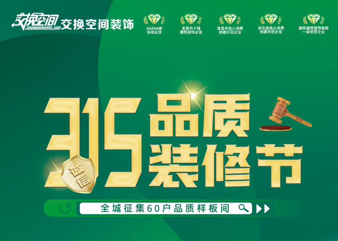 誠信不止315,品質(zhì)裝修每一天。從守護萬家到美滿萬家,交換空間時刻將工程品質(zhì)放在心頭,為每一寸的品質(zhì)執(zhí)著堅守!優(yōu)秀的設(shè)計、過硬的質(zhì)量、匠心的工藝、極致的服務(wù)、放心裝修,舒心生活,就是我們的服務(wù)宗旨