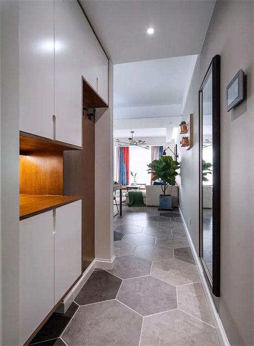 另外垂直不好做的話,可以試試平行于入戶門的做法。