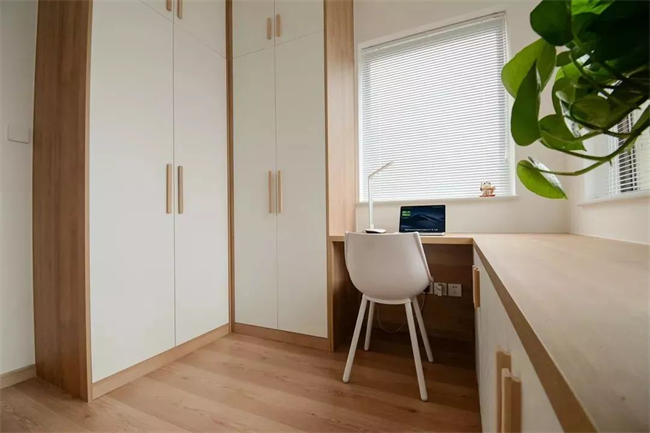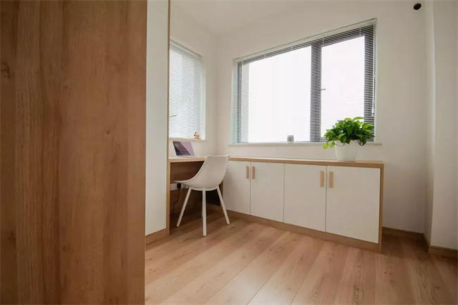 ▲ 書房書桌的設(shè)計(jì)在窗戶邊,保證了采光的充足,百葉簾設(shè)計(jì)超級(jí)好看。