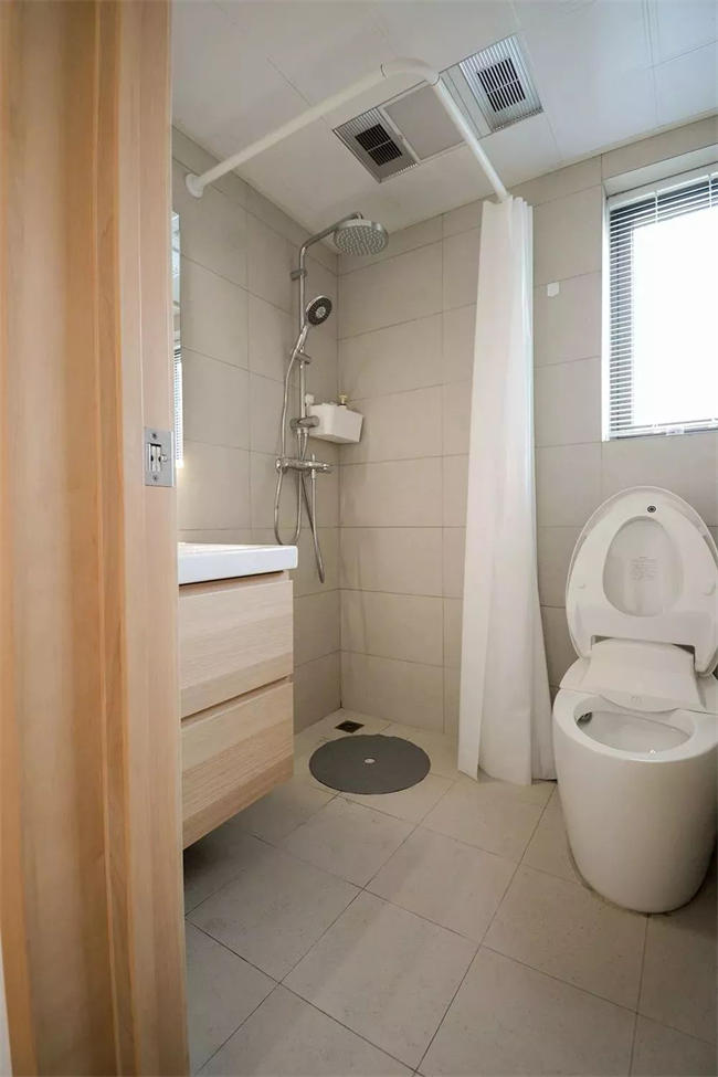 ▲ 浴簾是最簡(jiǎn)單的干濕分離設(shè)計(jì),最經(jīng)濟(jì)實(shí)惠,但是要注意下水坡度的設(shè)計(jì)。