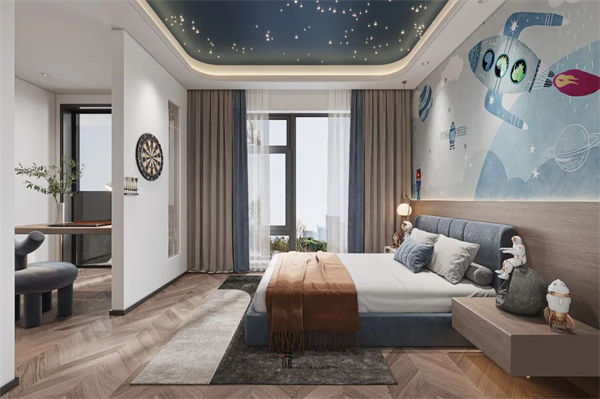 臥室裝飾以淺色系為主,利用巧妙的設(shè)計(jì)讓空間充滿層次感,同時將窗景引入,使起居生活與自然緊密聯(lián)系,滿足日常需求的同時帶來視覺上的美感。尋一隅靜謐,不論是讓思緒沉浸的書房,還是讓身心舒緩的臥室,都讓居住者真正遠(yuǎn)離城市的喧囂,沉淀內(nèi)心自我的真實(shí)需求,并完全釋放出來。