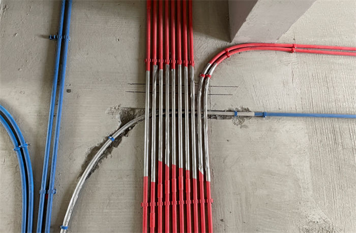在強(qiáng)電與弱電的交匯管處,我們采用錫箔紙進(jìn)行包裹,杜絕電路隱患。所有電線均在彈線開(kāi)槽后,先鋪設(shè)線管再進(jìn)行穿線。避免先穿線后鋪設(shè)線管后,無(wú)法抽動(dòng)電線的現(xiàn)象,便于后期發(fā)生問(wèn)題可以抽動(dòng)電線維修。在后期封磚環(huán)節(jié),我們也會(huì)在墻磚外貼上管道位置示意紙,讓業(yè)主與施工隊(duì)明確水電管道位置,保障施工安全。
