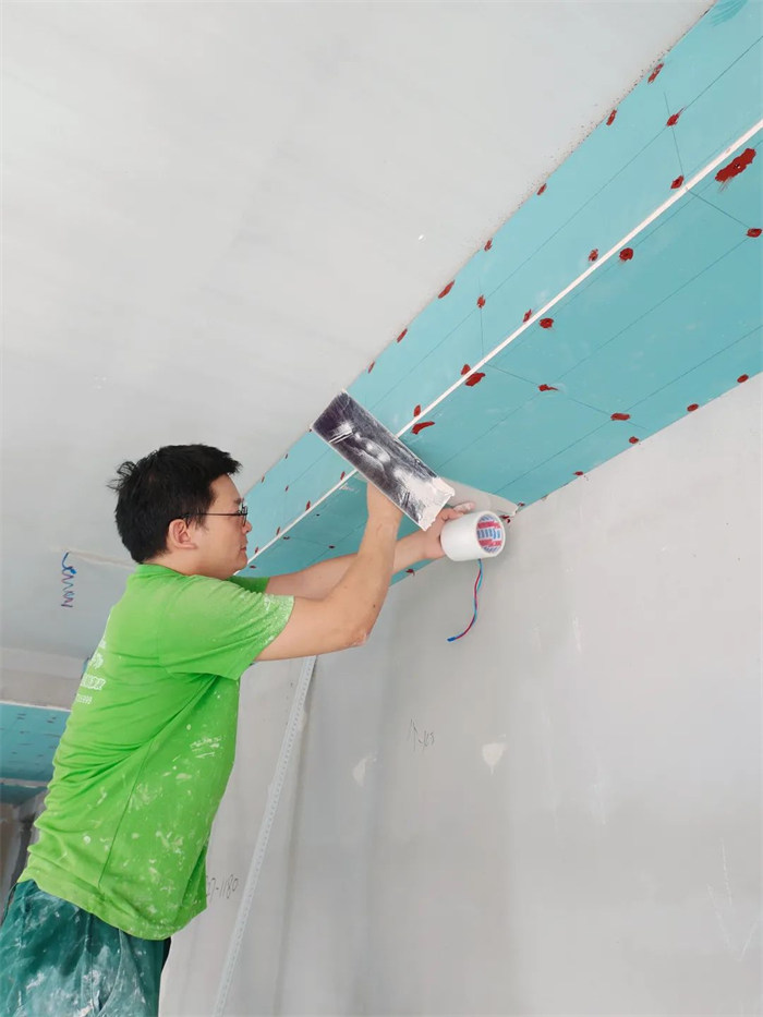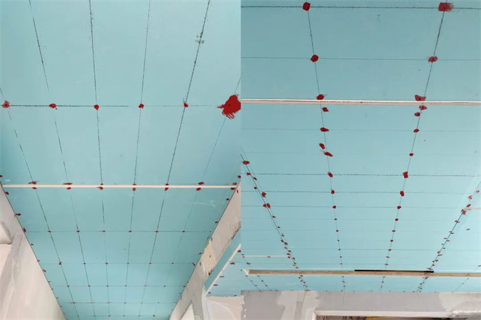 △網(wǎng)格膠帶起到輔助保護(hù)的作用,可以防止吊頂開裂