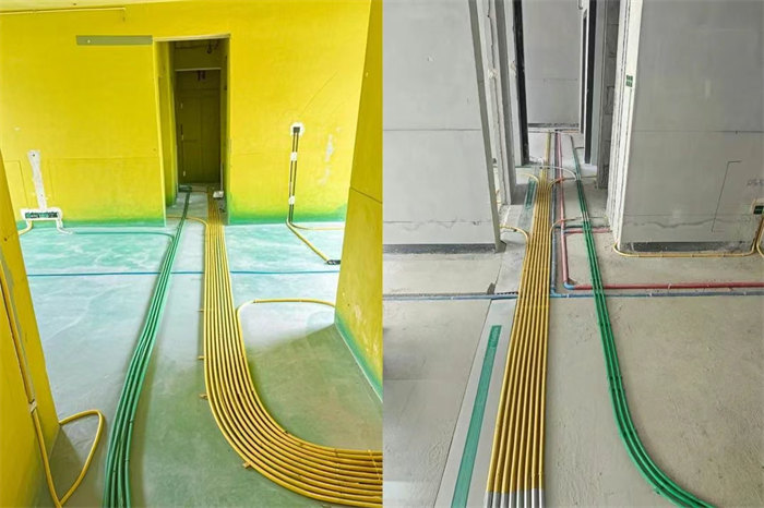 △線管排布感觀橫平豎直,底盒固定后沒(méi)有超出原始?jí)γ?,單一和?lián)排底盒水平無(wú)誤差,合格。