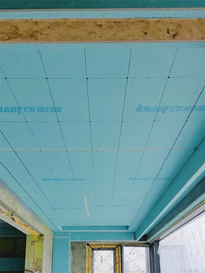 △吊頂平梁,梁下過(guò)一層石膏板,厚度10mm,縫隙用發(fā)泡膠軟鏈接,合格。