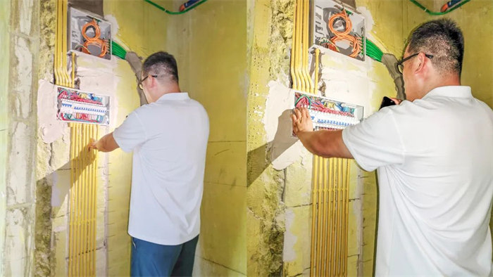 這是我們的監(jiān)理在檢查配電箱與電路是否安裝合格。