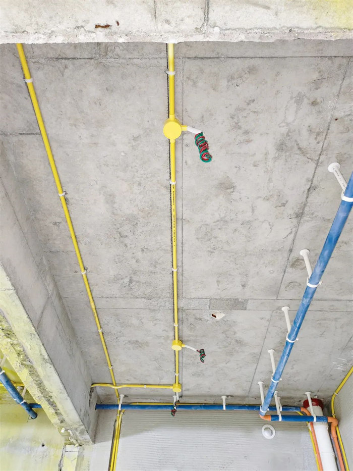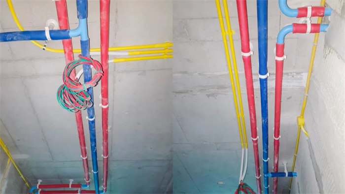 △水管排布感觀橫平豎直,墻體線槽內(nèi)給水管只能用整管,不允許用直接連接,合格。