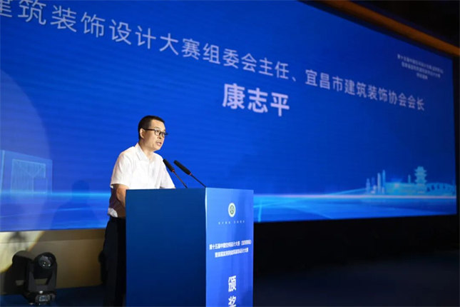 ▲設(shè)計(jì)大賽組委會(huì)主任、宜昌市建筑裝飾協(xié)會(huì)會(huì)長(zhǎng)康志平講話