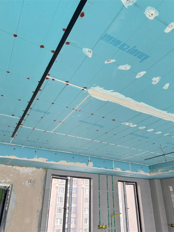 △吊頂的固定采用防銹自攻釘,間距均勻且全部做了防銹處理,每一顆釘子都是 “安全感” 的具象化。細節(jié)見真章,這樣的工藝標準,才能讓吊頂不僅是 “面子工程”,更是經得起時間考驗的 “里子保障”。