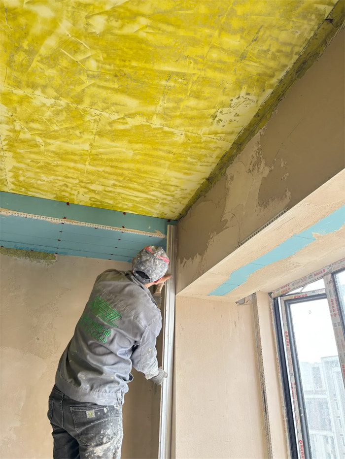 △墻面部分,師傅正在細致地進行找平處理,這是后續(xù)墻面美觀度的基礎。