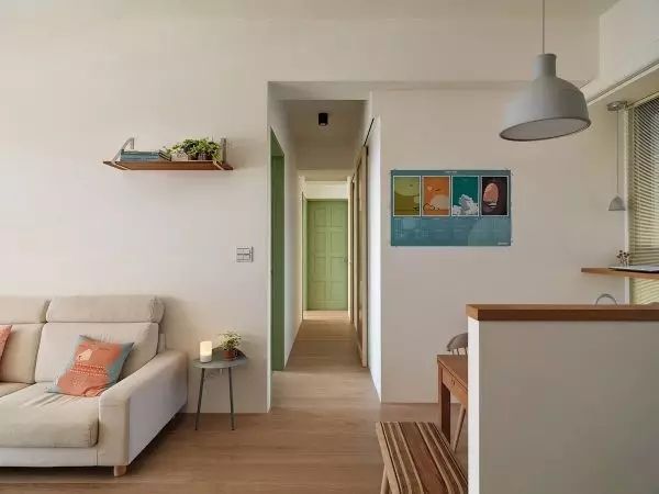 從客廳看玄關(guān)、餐廳,有沒有一種玄關(guān)可以替代衣柜的感覺?住家必需考慮收納問題,這樣的設(shè)計小編收了。