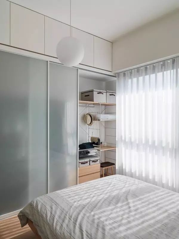 玻璃板衣柜門有反光的作用,使空間看起來更加寬敞明亮。
