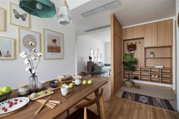 入戶玄關在增設隔斷的同時,讓整個空間隔,而不斷。在整個空間的視覺得以延伸的同時增加趣味性。
