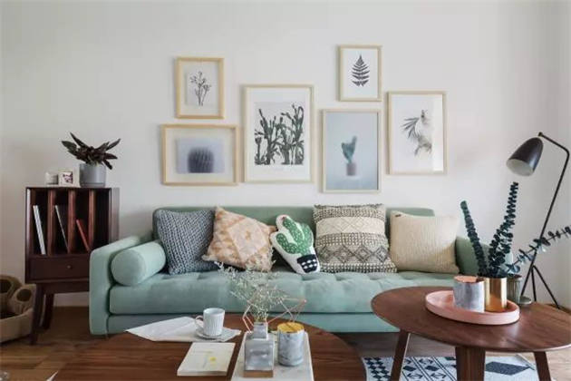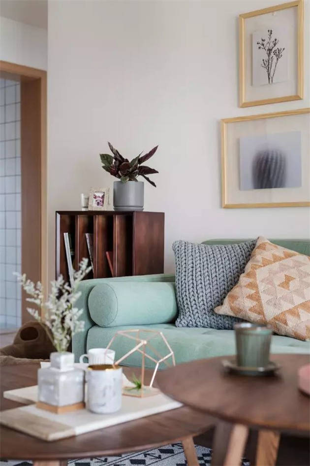 客廳清新唯美的治愈系配色,有種特別的渲染力,搭配自然紋理的木家具,有種讓人停下來慢慢欣賞的想法,瞬間被這種寧靜的氣氛所感染。