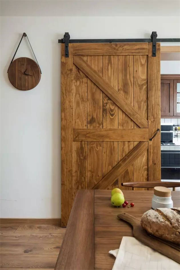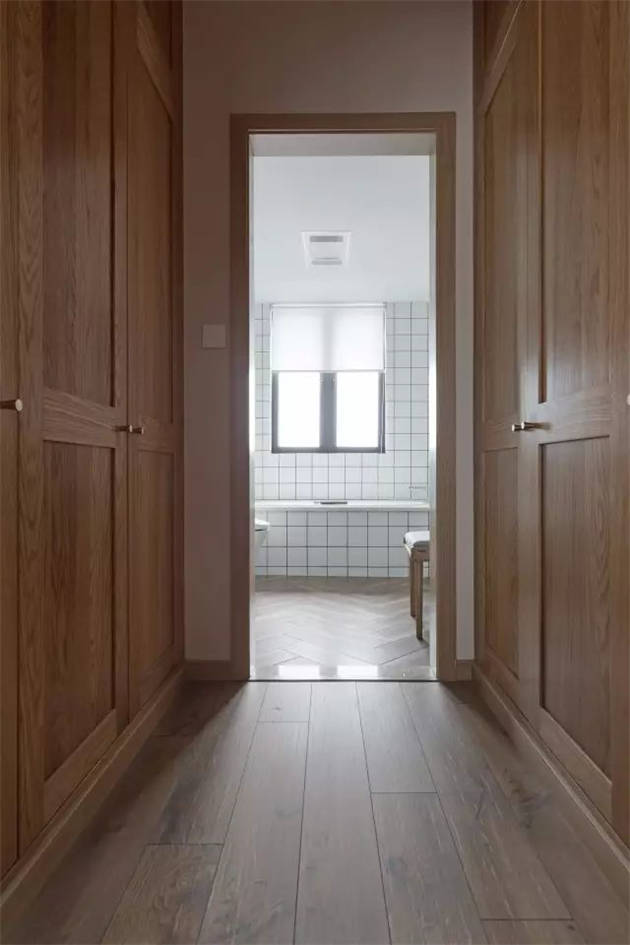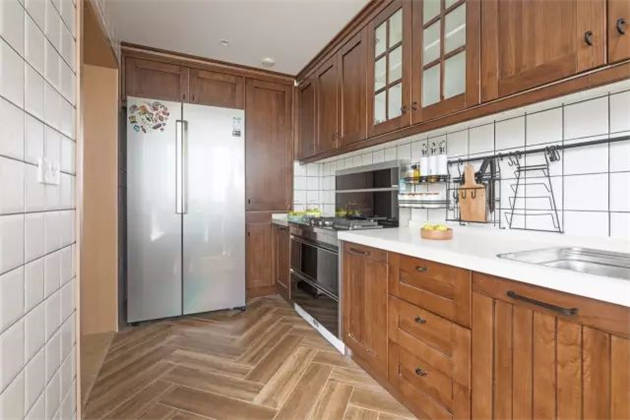 廚房木色的地磚和柜門配以白色的小方磚,讓整個空間沉穩(wěn)而不失清新。