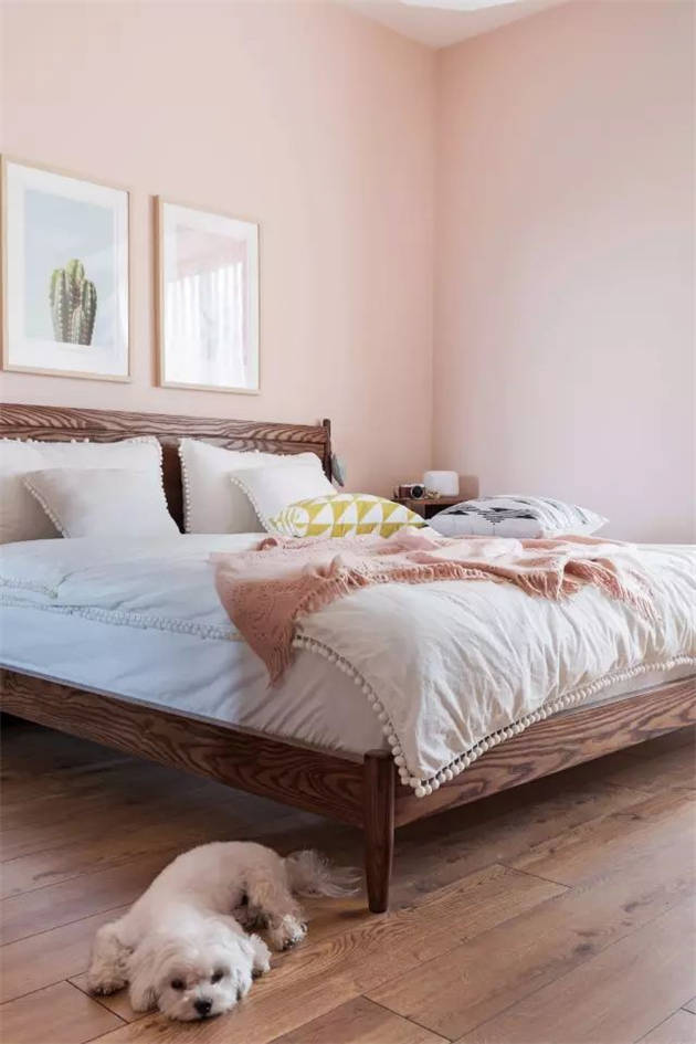 柔軟粉嫩的墻面配色搭配溫馨的木色地板,讓主臥空間煥發(fā)出別樣的清新浪漫。
