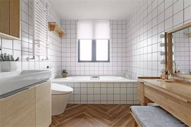 衛(wèi)生間除了有個超棒的浴缸之外,還設計了美美的梳妝臺。