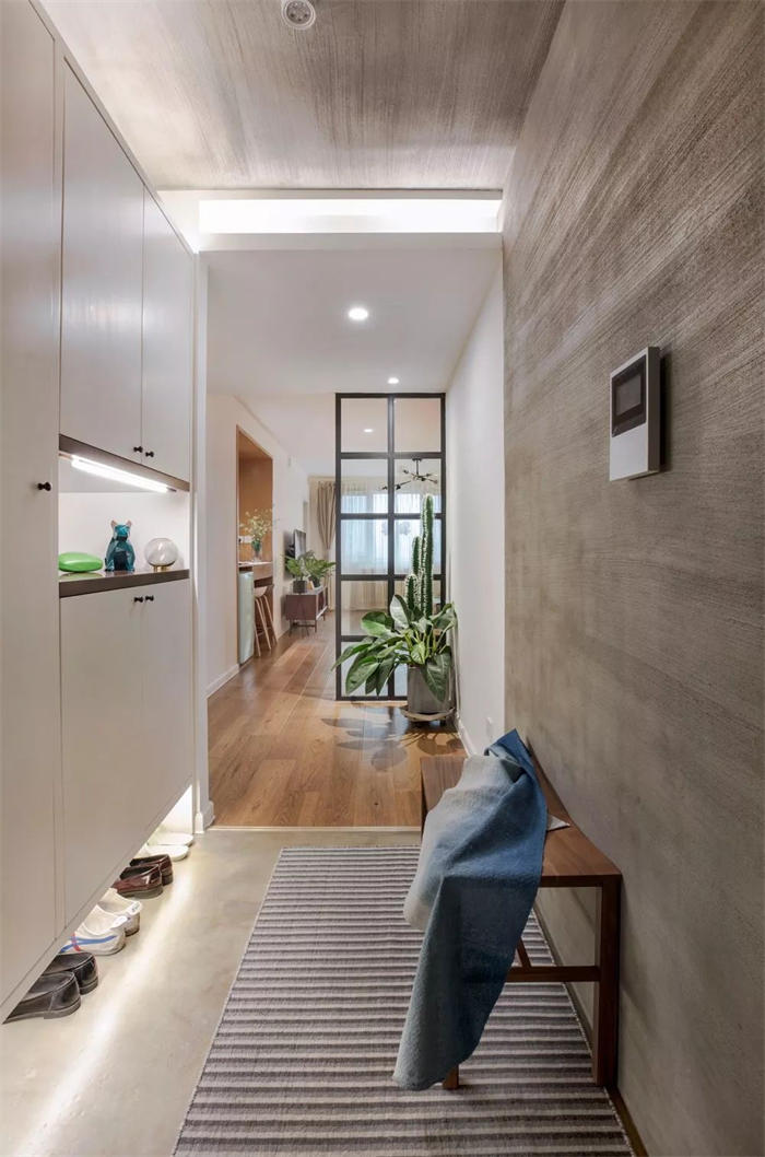 ▲玄關(guān)的墻面與吊頂,選用暖灰色的木板裝飾,搭配木質(zhì)感的門(mén),呈現(xiàn)出一個(gè)輕松自然的空間。