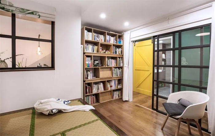 ▲書(shū)房以落地推拉門(mén)隔斷,讓空間保持通透明亮。