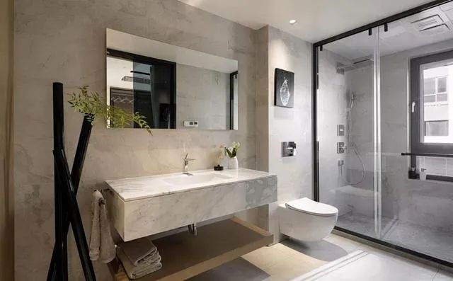 如果條件允許的話,衛(wèi)生間裝修的時候,洗手池和馬桶都盡量走墻排。下水走墻排之后,就可以把浴室柜和馬桶設(shè)計成懸空。這樣不僅好看顯檔次,而且浴室柜和馬桶下面不會出現(xiàn)藏污納垢的情況。平時打掃衛(wèi)的時候可以直接沖洗,事半功倍。