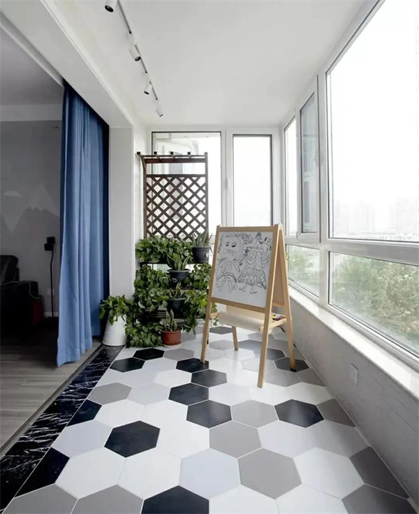 例如,可以選擇相對來說比較健康環(huán)保的木地板對陽臺進行鋪裝,如果家有小孩,也可以在陽臺定制秋千,放置孩子玩具等。