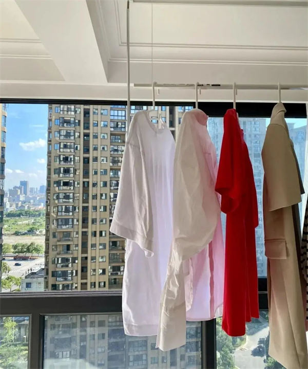 而且,也不限于傳統(tǒng)晾曬衣服的方式,陽臺晾曬衣服也可以“玩”出多種花樣。