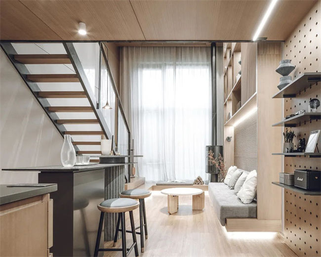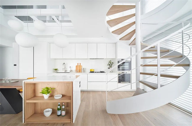 懸浮樓梯的設(shè)計,摒棄了繁冗的線條感,在滿足使用功能的同時,更像是一件高級的家居藝術(shù)品。
