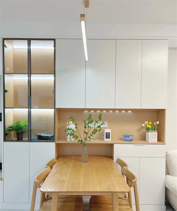 餐邊柜可以選擇定制或成品,如果空間允許的話,可以選擇定制餐邊柜,這樣可以更好地利用空間。