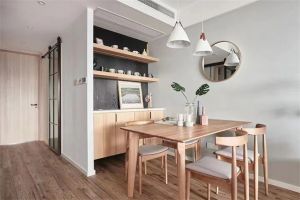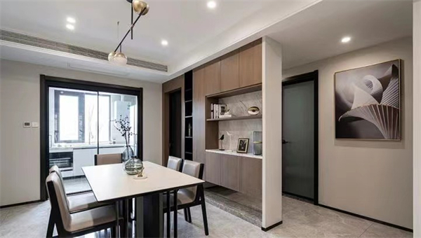 喜歡嵌入式設(shè)計(jì)但餐廳又是承重墻的話,也可通過(guò)砌假墻的方式來(lái)實(shí)現(xiàn)。