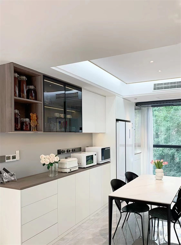 烤箱、微波爐等電器工作時(shí)溫度很高,所以櫥柜面板要選擇耐高溫的材質(zhì)。