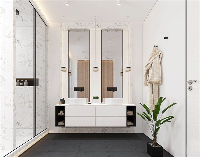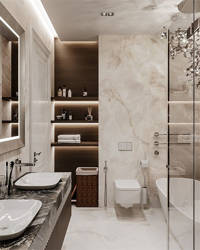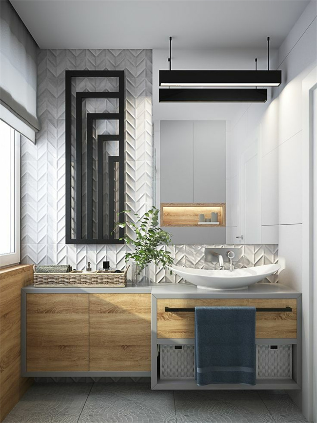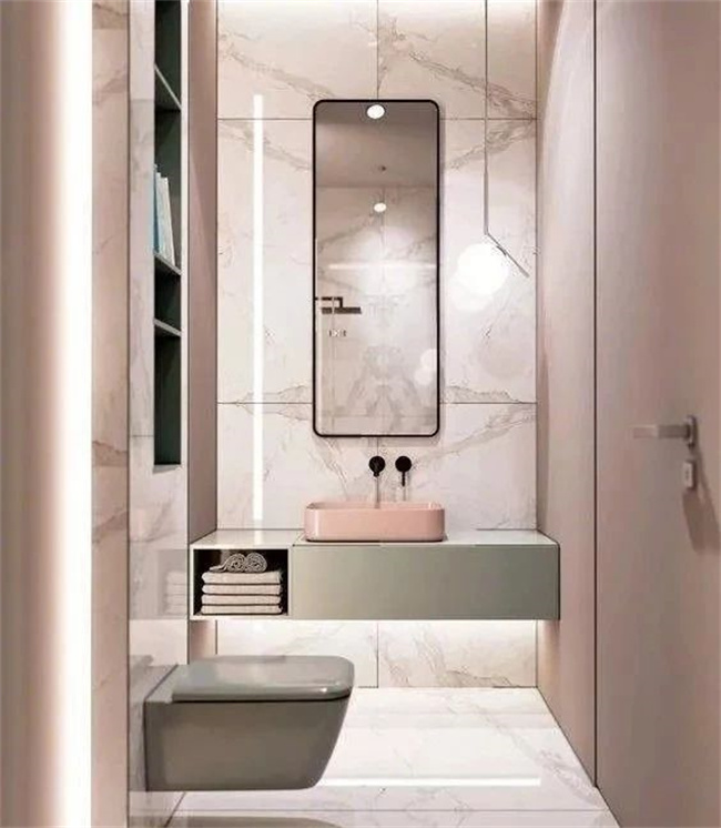傳統(tǒng)洗漱臺,邊邊角角很難清理,懸浮式洗漱臺就容易清理多了,打掃時空間足夠?qū)挸?。再加上燈光的設(shè)計,整體都明亮不少。