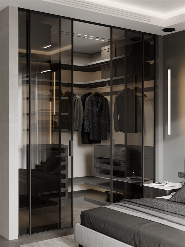 要想找衣服更方便,還有個(gè)方法就是做個(gè)玻璃柜門,它能讓你對(duì)衣柜內(nèi)部的分區(qū)一目了然,直接拿取想要的衣物,還能增加空間的層次感,讓臥室看起來(lái)更寬敞亮堂。