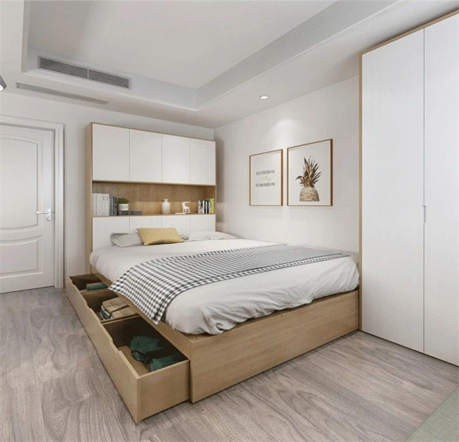 很多床都是懸空設(shè)計(jì),床下保留閑置空間,這種情況可以選擇自帶抽屜柜或收納格的床,用來(lái)收納棉被、反季節(jié)的衣物,或囤放衛(wèi)生紙、經(jīng)常不看的書籍等。
