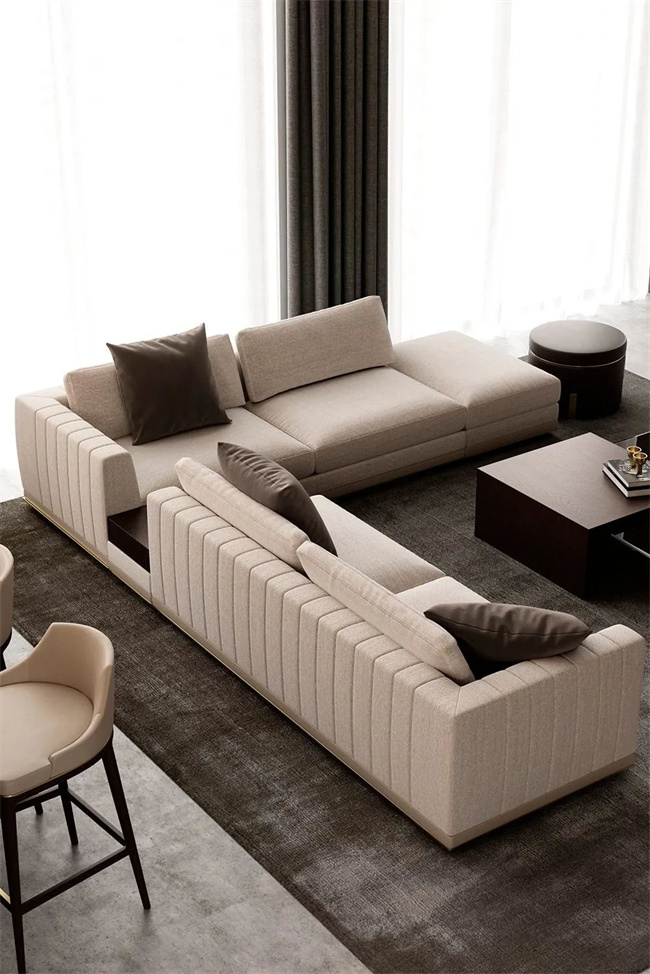 沙發(fā)的尺寸要根據(jù)客廳的實際面積來定,沙發(fā)大概占四分之一的面積?,F(xiàn)在流行中小戶型,客廳在20-30㎡,常見的沙發(fā)選擇是雙人或三人沙發(fā)。