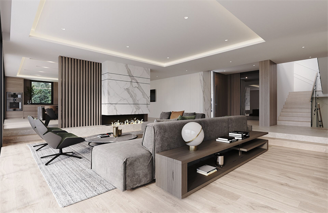 這里有幾個尺寸要注意:沙發(fā)與茶幾的適宜距離約30cm;茶幾與電視墻的適宜距離約60cm;沙發(fā)墻和電視機(jī)之間的適宜距離約3-4m;沙發(fā)靠背的高度約85-90cm;沙發(fā)不靠墻,后面的走道寬度約100-120cm;壁掛電視離地約80cm;沙發(fā)+茶幾占主墻3/4,主墻不要短于3m。