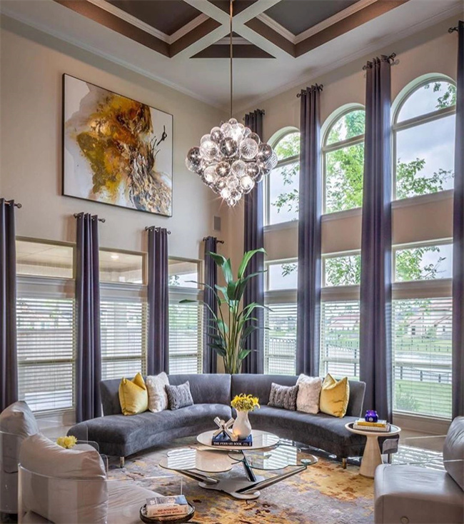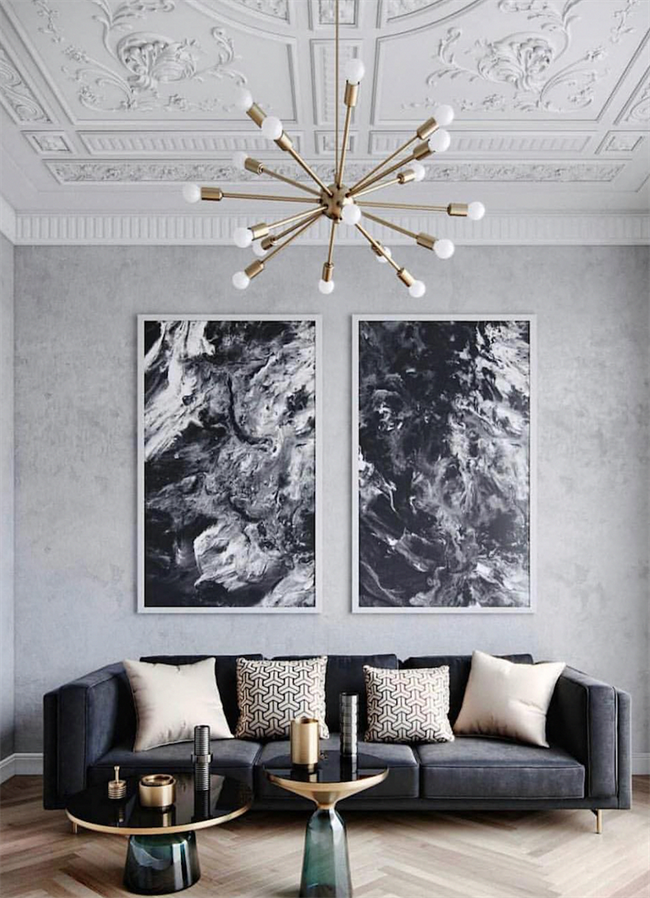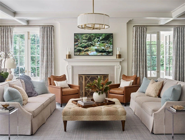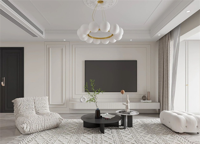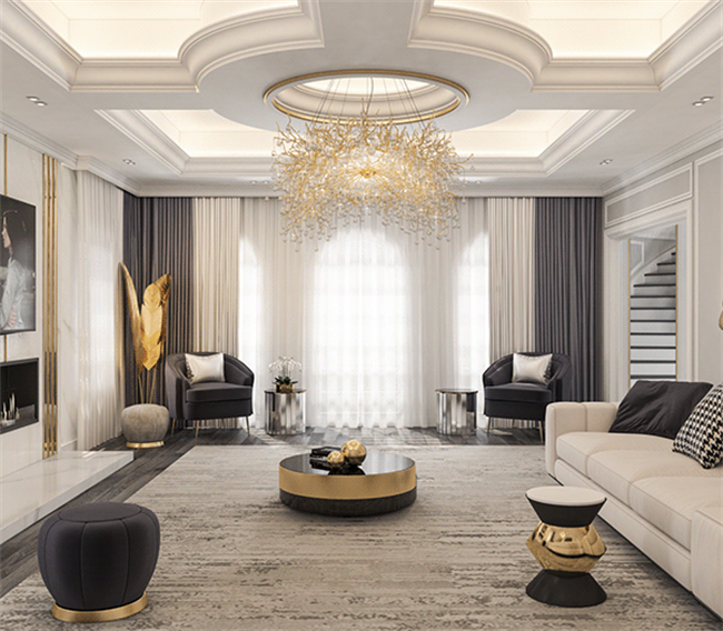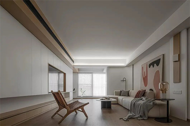 吊平頂:遇到有橫梁的客廳,如果裝修預(yù)算充足且層高足夠的話,將整個天花吊平頂是最直接的選擇,橫梁可以完美地藏匿其中。