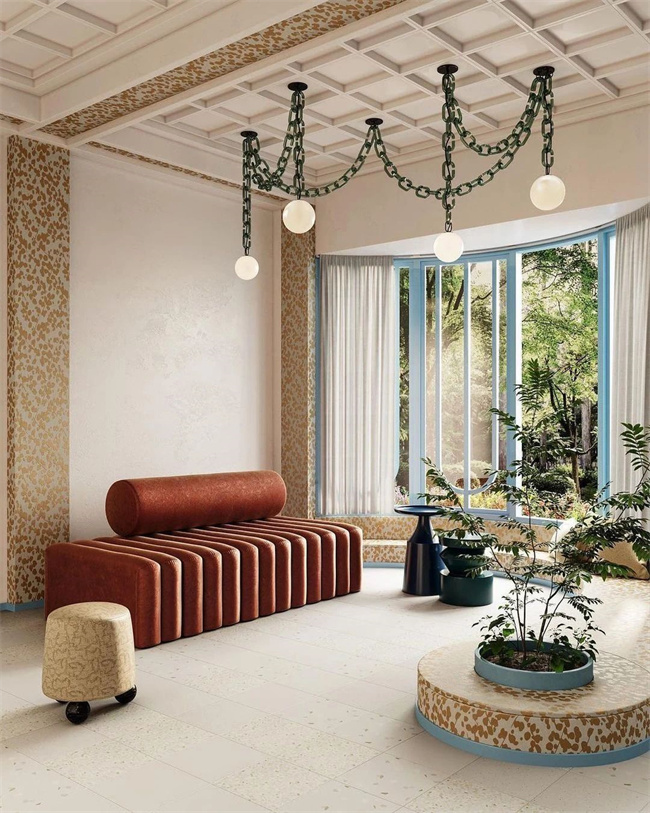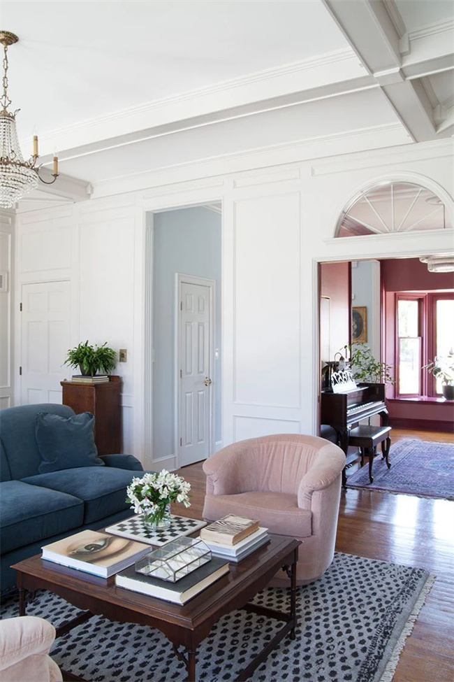 若橫梁處在空間的邊界,梁體與下方的墻體可以采用不同顏色的乳膠漆,增強(qiáng)頂面設(shè)計多樣性,讓空間顯得更有層次感。