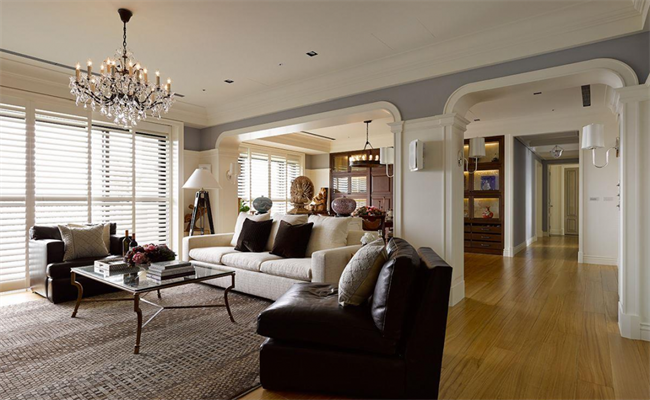 例如與墻面一起做拱門造型,可以將視覺重心從橫梁轉(zhuǎn)變?yōu)殚T洞,且設(shè)計感強(qiáng)。通過石膏板做弧度造型,外表加以裝飾即可。