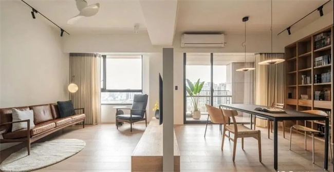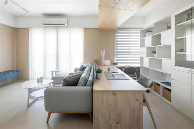 橫梁下方打造功能區(qū):橫梁下方規(guī)劃功能區(qū),如底部擺放沙發(fā)、書桌等,有效將人的視覺重心轉(zhuǎn)移,弱化橫梁,還可充當(dāng)隔斷使用。