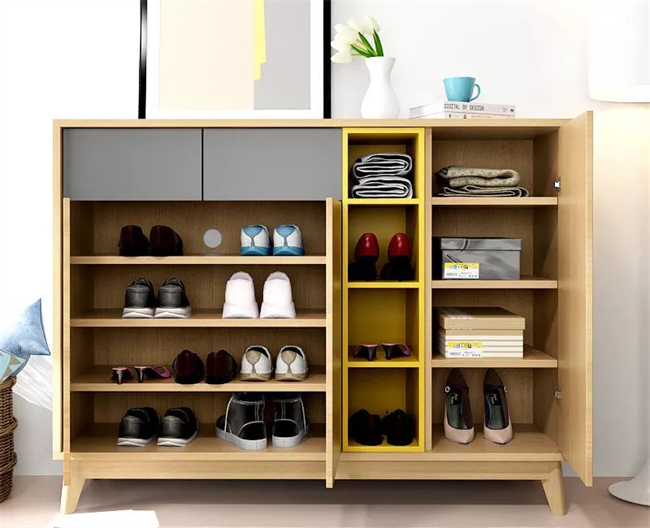 4、鞋柜層板分高矮,最好設(shè)置成活動(dòng)的,根據(jù)鞋子高度來調(diào)整。