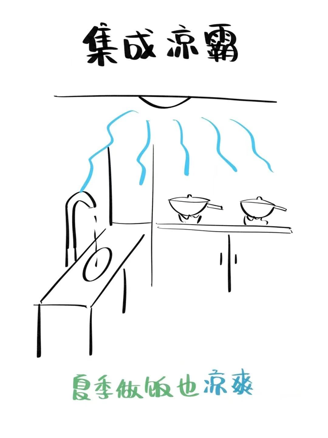 廚房由于油煙很重?zé)o法做空調(diào),夏季做飯時(shí)溫度又特別高,這時(shí)可在吊頂內(nèi)集成一個(gè)涼霸,用來(lái)夏季制冷。