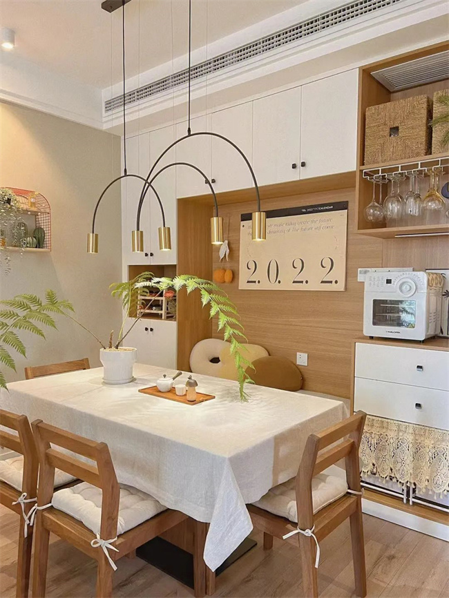 1、先確定好餐桌的擺放方向以及顏色,再考慮配什么樣的燈,你一眼看中的吊燈未必就適合你的裝修風(fēng)格。