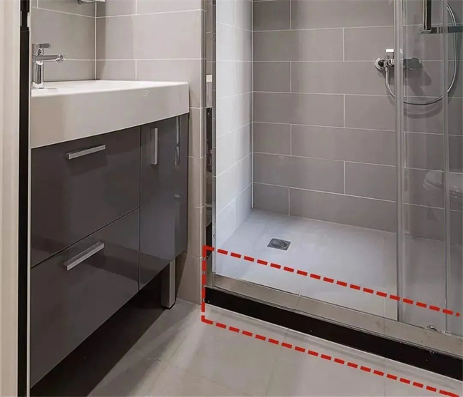 為了避免淋浴時水漫延到干區(qū),有人會選擇在淋浴區(qū)外圍裝石材擋水條,雖然具有一定的擋水效果,但裝這個擋水條會帶來一系列問題,例如發(fā)霉、產(chǎn)生衛(wèi)生死角等等。