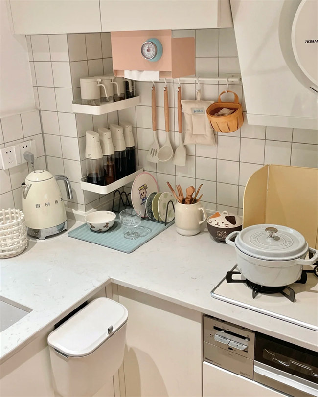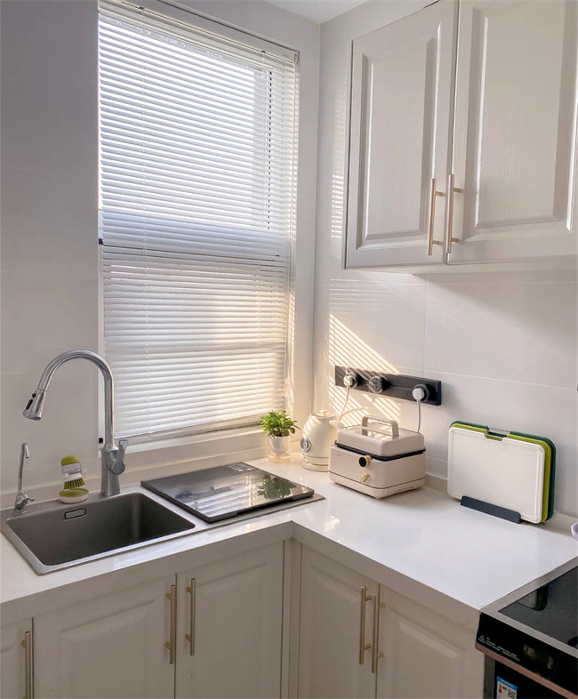 在設(shè)計(jì)廚房的時(shí)候一定要考慮到收納空間,大家都知道廚房的東西比較多,如果收納空間不夠,是真的很鬧心,所以大家盡量選擇定制吊柜、櫥柜。平時(shí)不用的東西都可以收納起來(lái),這樣廚房看起來(lái)也更加的整潔舒適。視覺(jué)上更加通透,做飯的時(shí)候才能保持愉悅的心情。