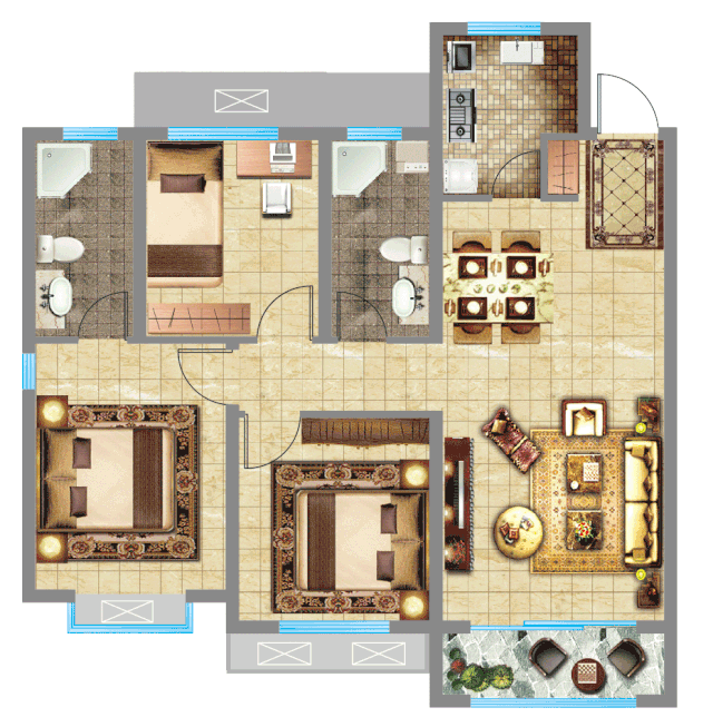 動區(qū):主要區(qū)域有客餐廳、廚房、陽臺等開放空間,有很多活動都會在這些區(qū)域里進(jìn)行,這些區(qū)域相對也會比較吵鬧;