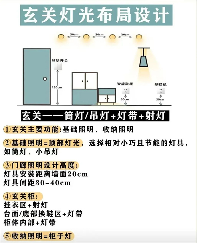 一盞5W射燈 /筒燈,或一盞離地2m的吊燈,玄關(guān)就夠用了~