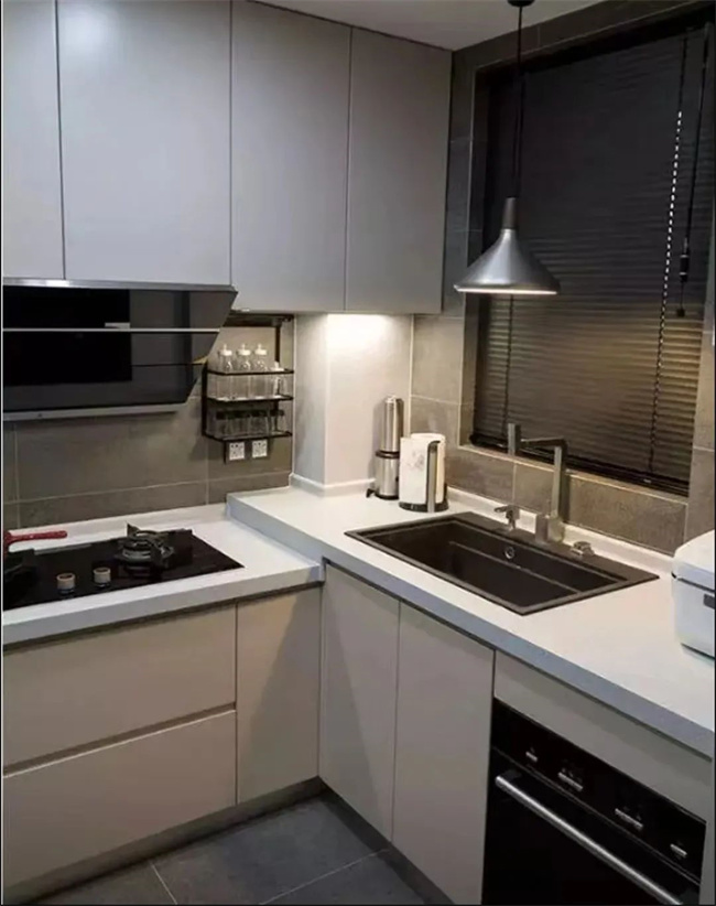 針對小廚房的戶型,很多設(shè)計師會建議在餐區(qū)增加水吧臺,功能完善的話,其實就是一個西廚。