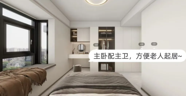 我們舍棄了常規(guī)的收納柜,使用匹配的電視+電視柜,更符合老人審美~