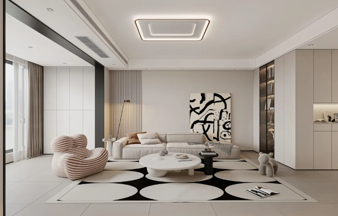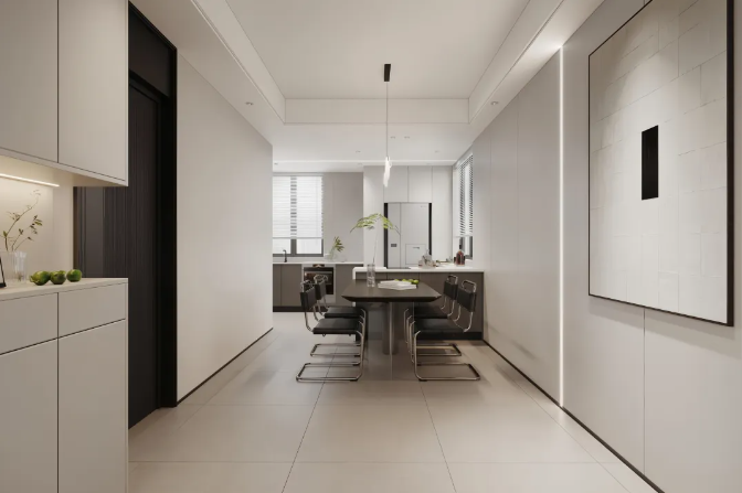 奶油色作為主色調(diào),為家增添了一份溫馨與浪漫。搭配灰色門框作為跳色,讓整個空間充滿生機與活力。同時,淺色調(diào)的運用也使得空間更加明亮、寬敞。