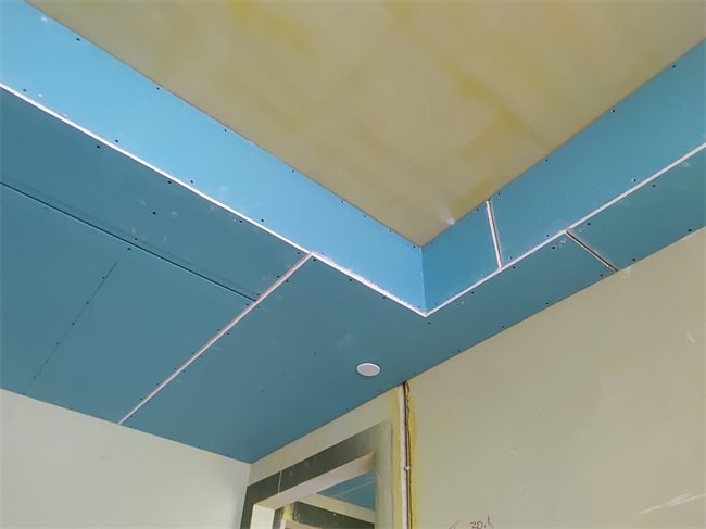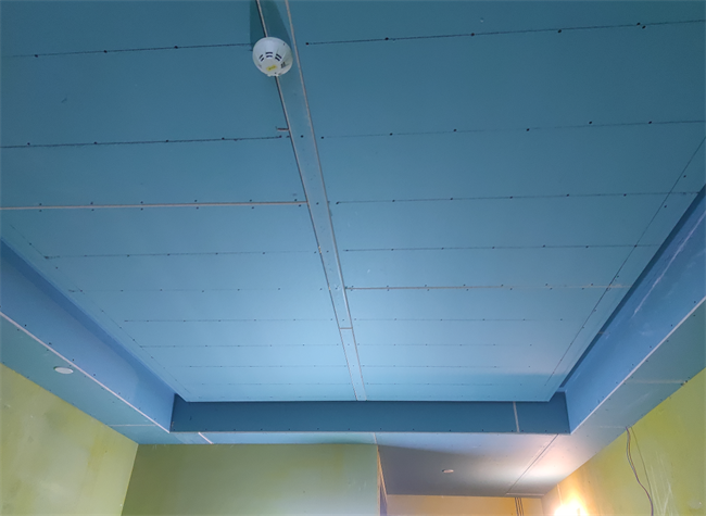 吊頂使用輕鋼龍骨施工,采用了邊龍骨加固施工工藝。方便吊頂毛邊及檢查部位等封口,使邊角部位保持整齊、順直。